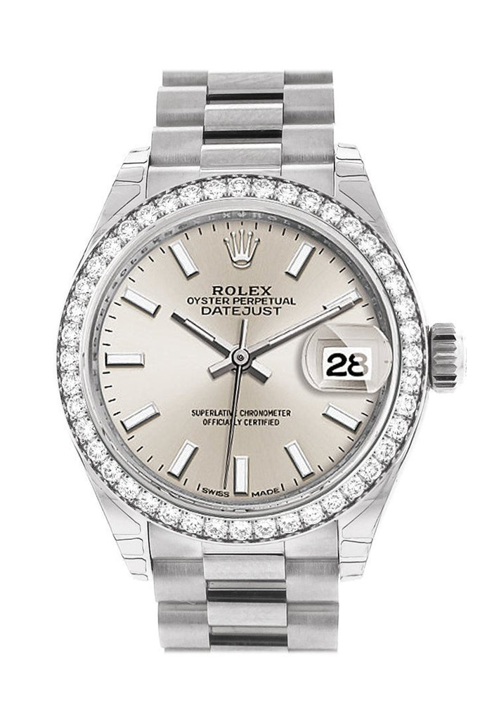 Rolex Datejust 28 Silver Dial Diamond Bezel President Ladies Watch 279136RBR 279136 NP