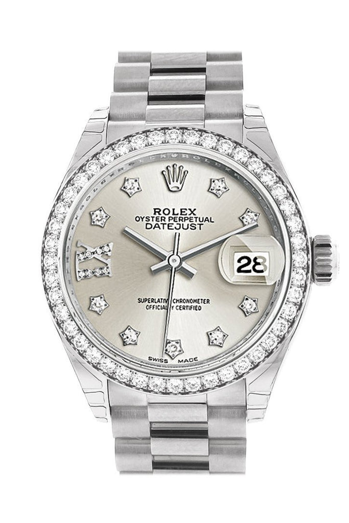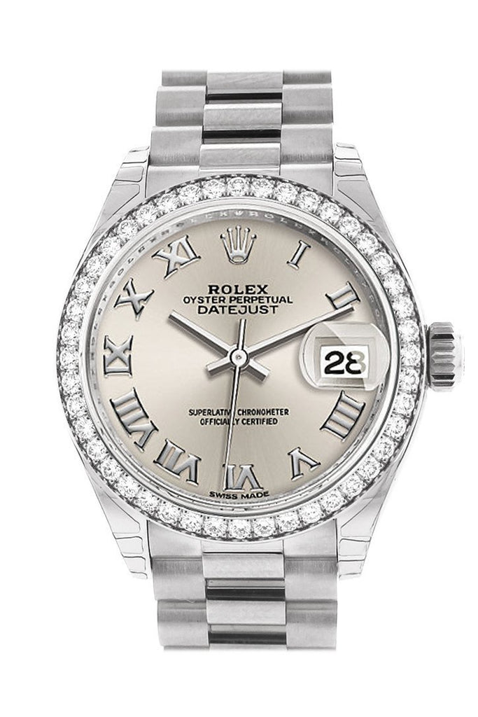 Rolex Datejust 28 Silver Roman Dial Diamond Bezel President Ladies Watch 279136RBR 279136 NP