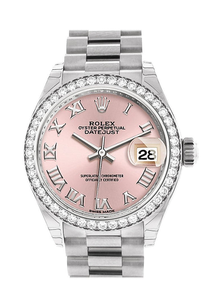 Rolex Datejust 28 Pink Roman Dial Diamond Bezel President Ladies Watch 279136RBR 279136 NP