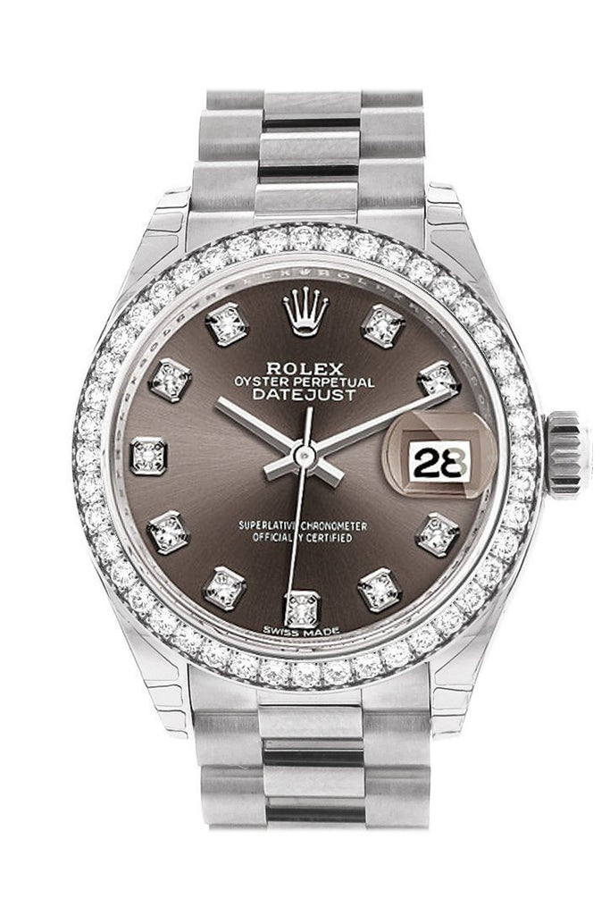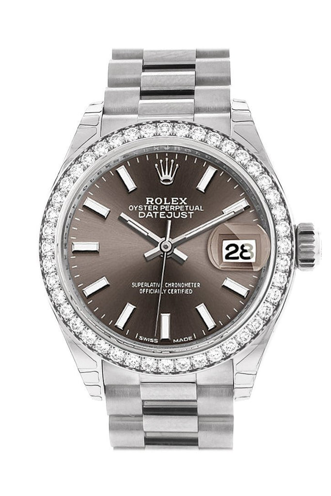 Rolex Datejust 28 Dark Grey Dial Diamond Bezel President Ladies Watch 279136RBR 279136 NP