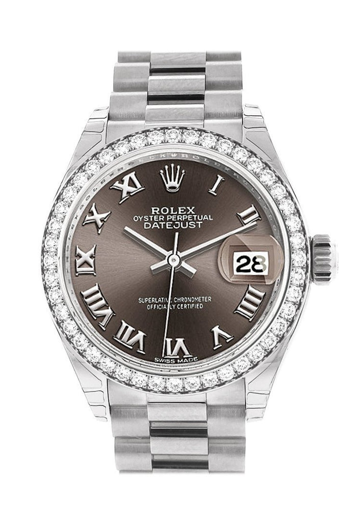 Rolex Datejust 28 Dark Grey Roman Dial Diamond Bezel President Ladies Watch 279136RBR 279136 NP