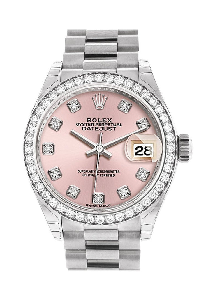 Rolex Datejust 28 Pink set with Diamonds Dial Diamond Bezel President Ladies Watch 279136RBR 279136 NP
