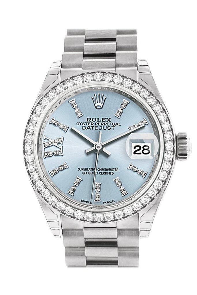 Rolex Datejust 28 Ice Blue Diamond set in Roman Dial Diamond Bezel President Ladies Watch 279136RBR 279136 NP