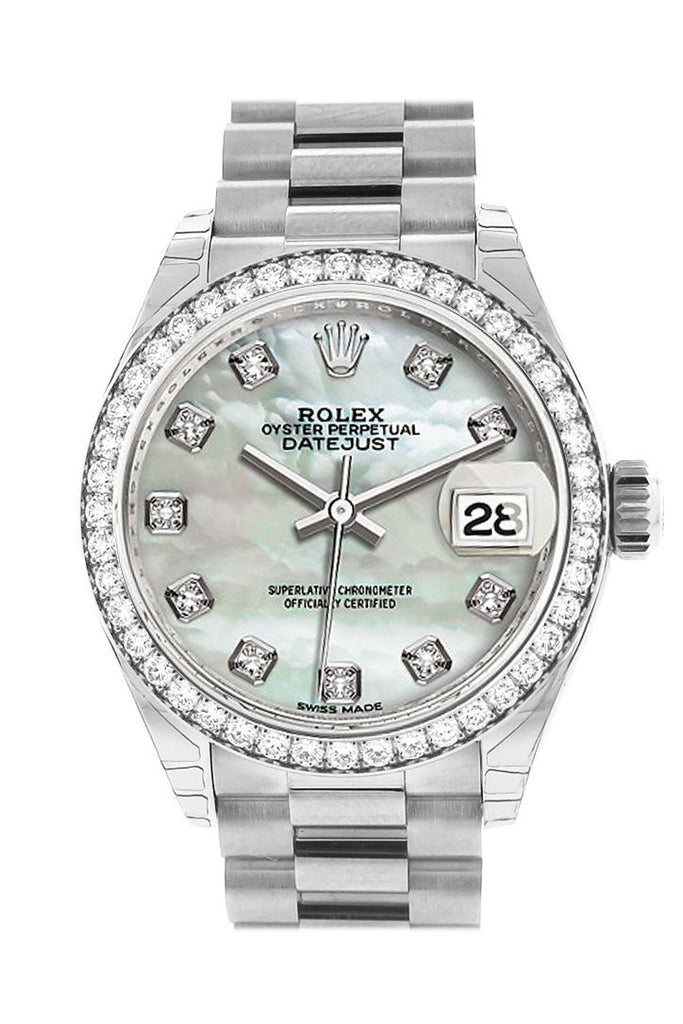 Rolex Datejust 28 Pearl Diamond Dial Diamond Bezel President Ladies Watch 279136RBR 279136 NP