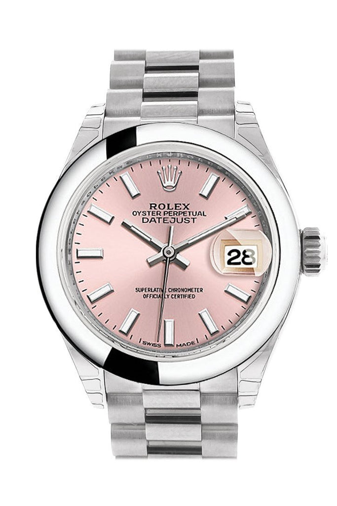Rolex Datejust 28 Pink Dial Dome Bezel President Ladies Watch 279166 NP