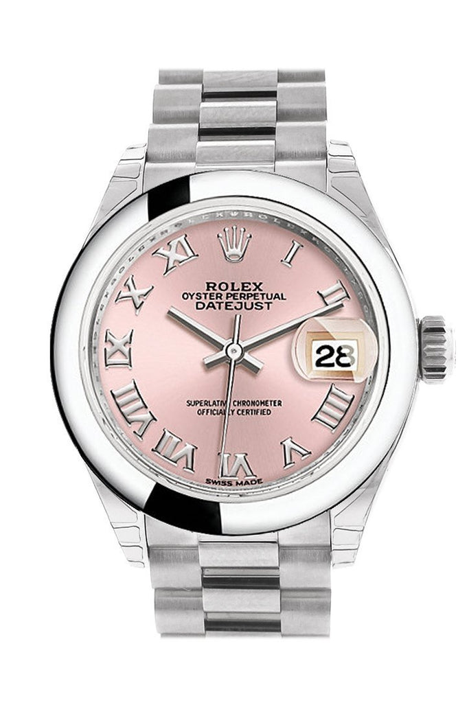 Rolex Datejust 28 Pink Roman Dial Dome Bezel President Ladies Watch 279166 NP