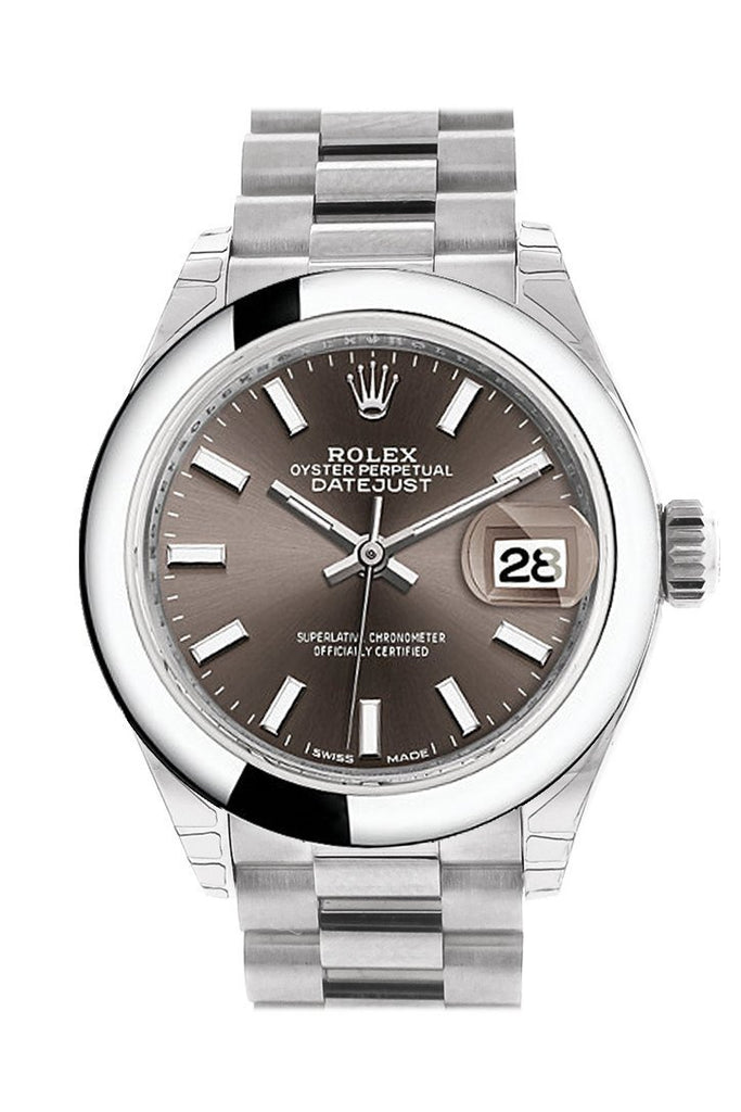 Rolex Datejust 28 Dark Grey Dial Dome Bezel President Ladies Watch 279166 NP