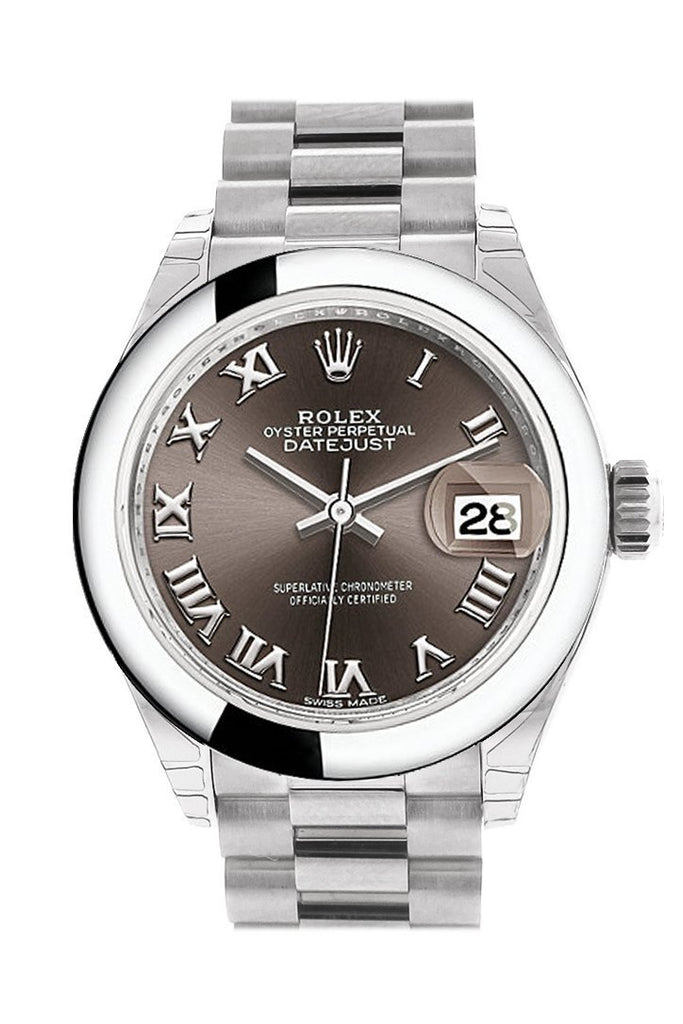 Rolex Datejust 28 Dark Grey Roman Dial Dome Bezel President Ladies Watch 279166 NP