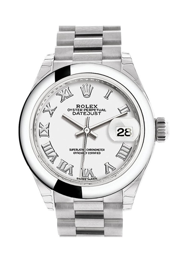 Rolex Datejust 28 White Roman Dial Dome Bezel President Ladies Watch 279166 NP