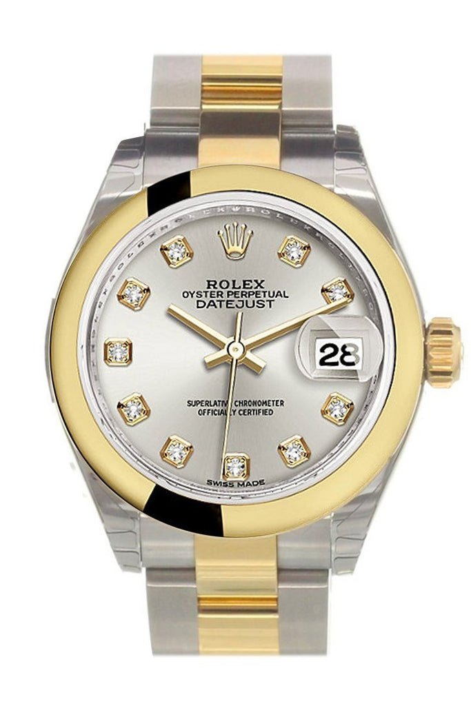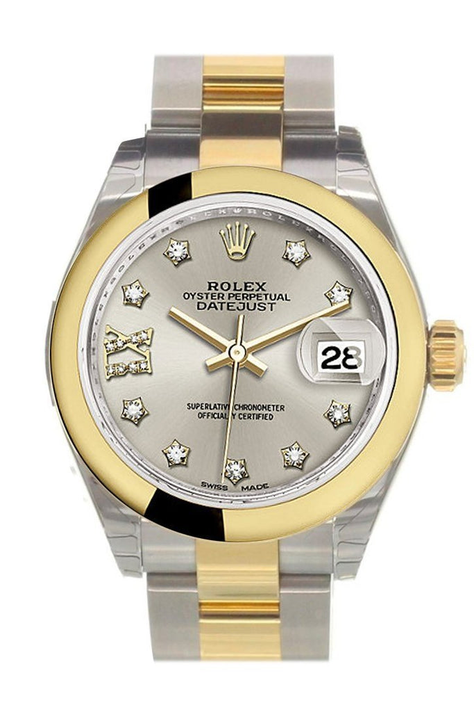 Rolex Datejust 28 Silver Diamond Dial Yellow Gold Two Tone Ladies Watch 279163