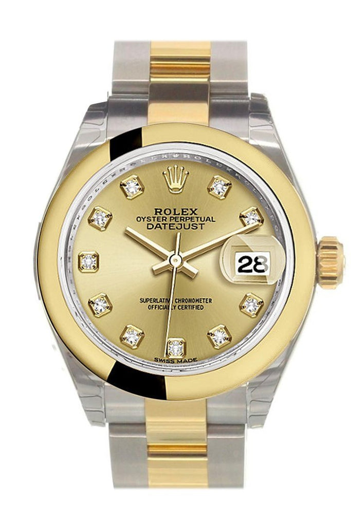 Rolex Datejust 28 Champagne Diamond Dial Yellow Gold Two Tone Ladies Watch 279163