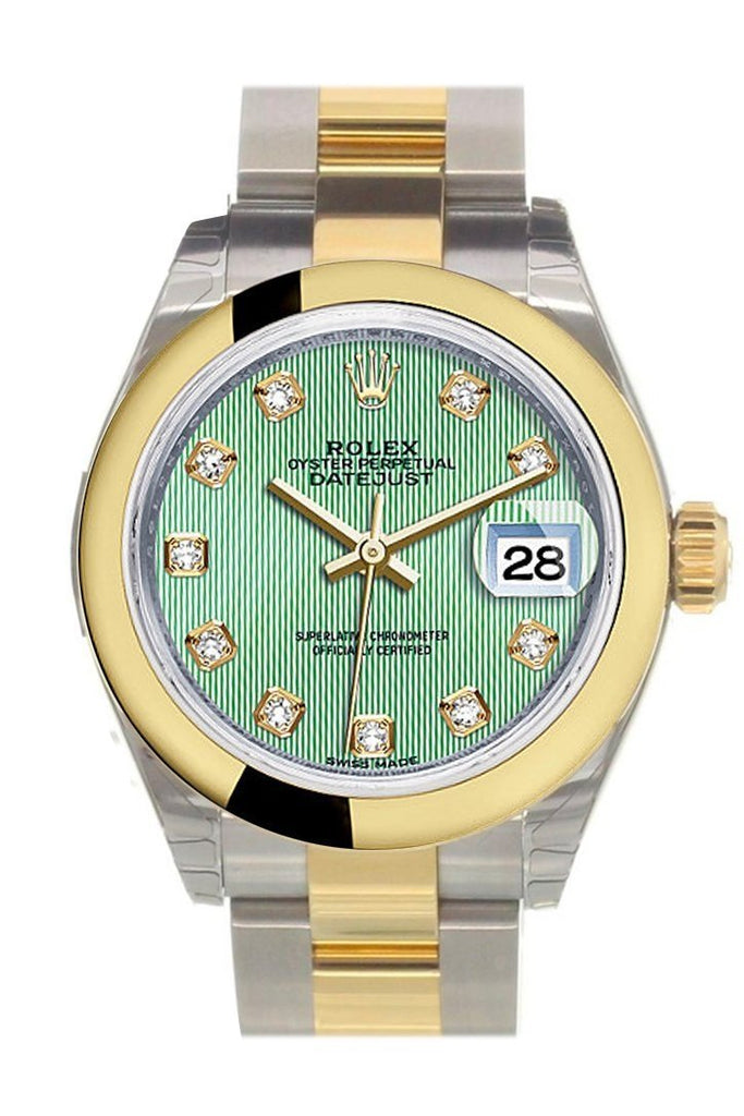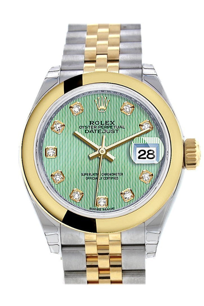 Rolex Datejust 28 Mint Green Diamond Dial Yellow Gold Two Tone Jubilee Ladies Watch 279163