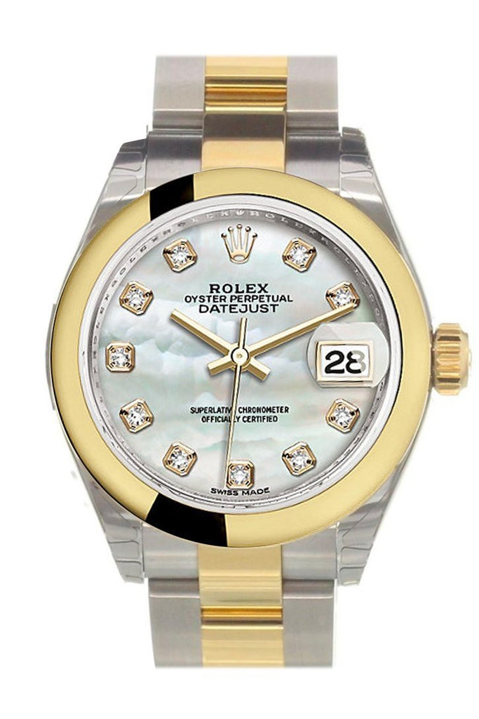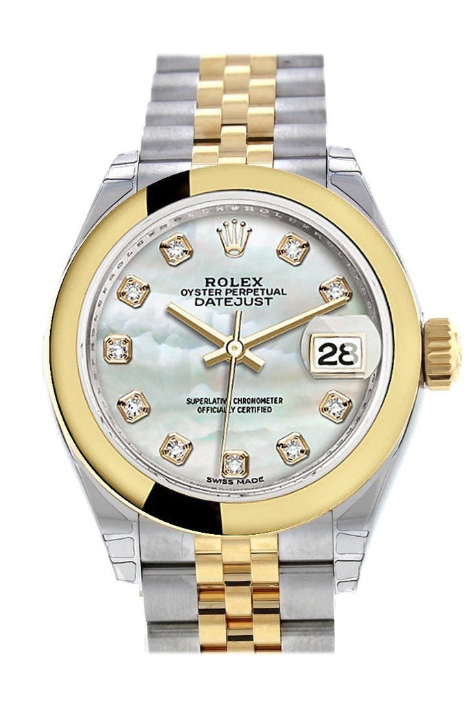 Rolex Datejust 28 Mother of Pearl Diamond Dial Yellow Gold Two Tone Jubilee Ladies Watch 279163