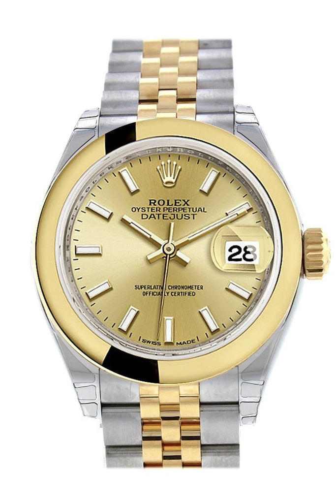 Rolex Datejust 28 Champagne Dial Yellow Gold Two Tone Jubilee Ladies Watch 279163