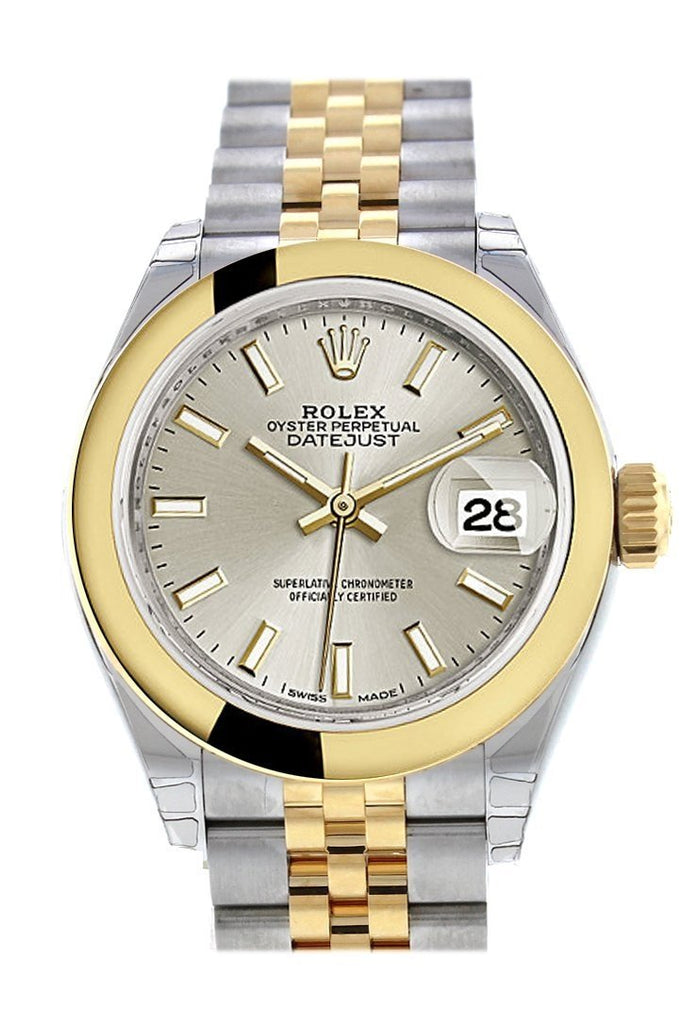 Rolex Datejust 28 Silver Dial Yellow Gold Two Tone Jubilee Ladies Watch 279163