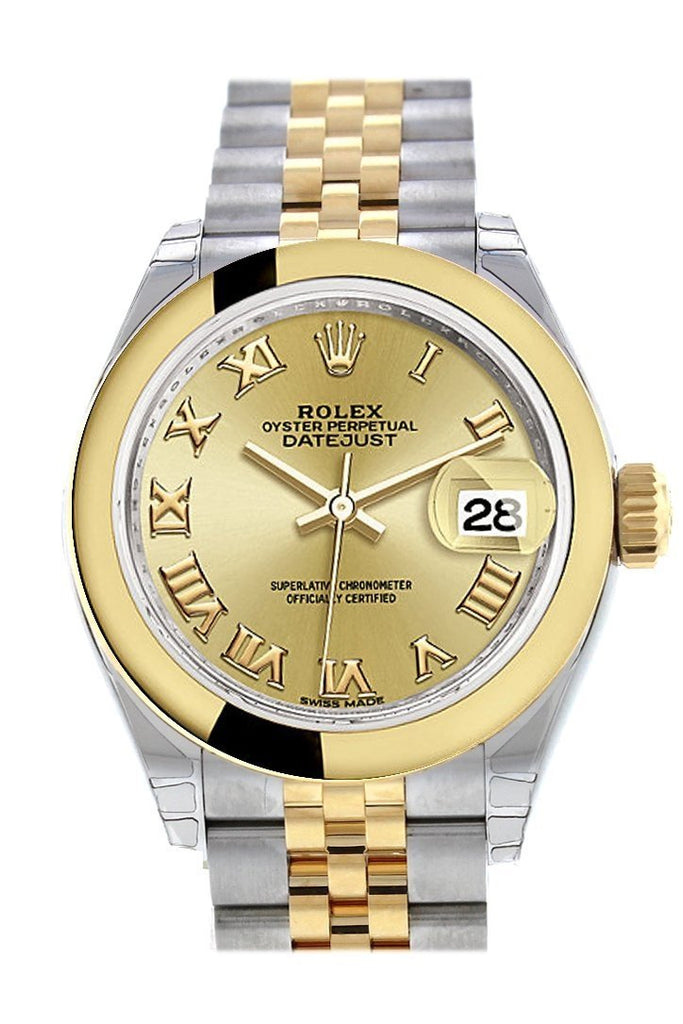 Rolex Datejust 28 Champagne Roman Dial Yellow Gold Two Tone Jubilee Ladies Watch 279163