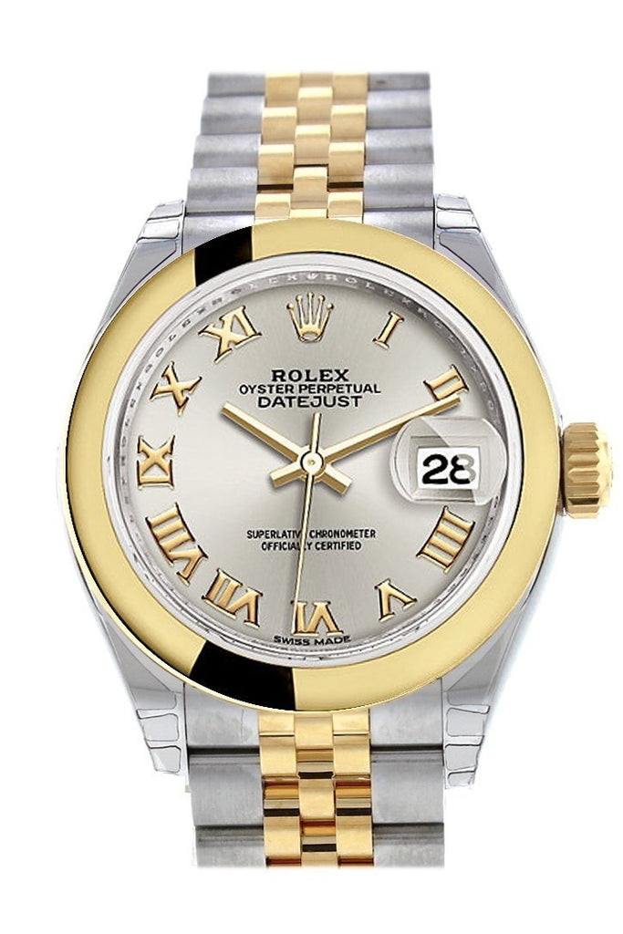 Rolex Datejust 28 Silver Roman Dial Yellow Gold Two Tone Jubilee Ladies Watch 279163