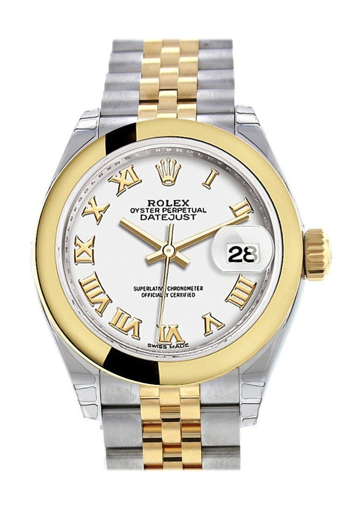 Rolex Datejust 28 White Roman Dial Yellow Gold Two Tone Jubilee Ladies Watch 279163