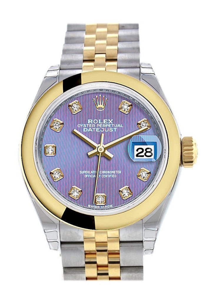 Rolex Datejust 28 Lavender Diamond Dial Yellow Gold Two Tone Jubilee Ladies Watch 279163