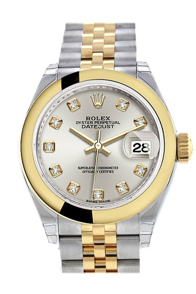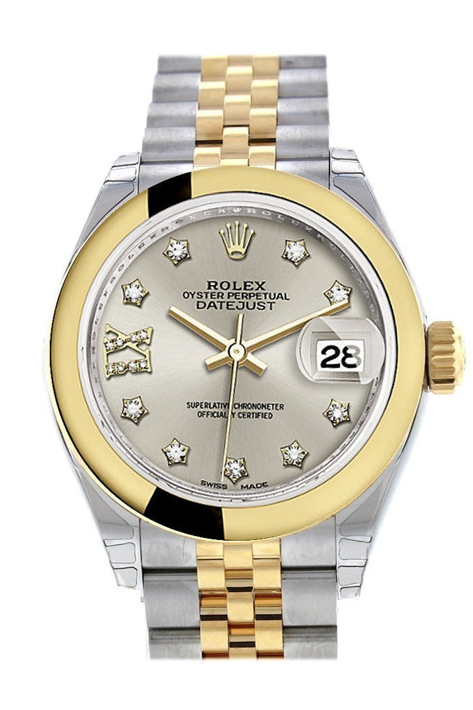 Rolex Datejust 28 Silver Diamond Dial Yellow Gold Two Tone Jubilee Ladies Watch 279163