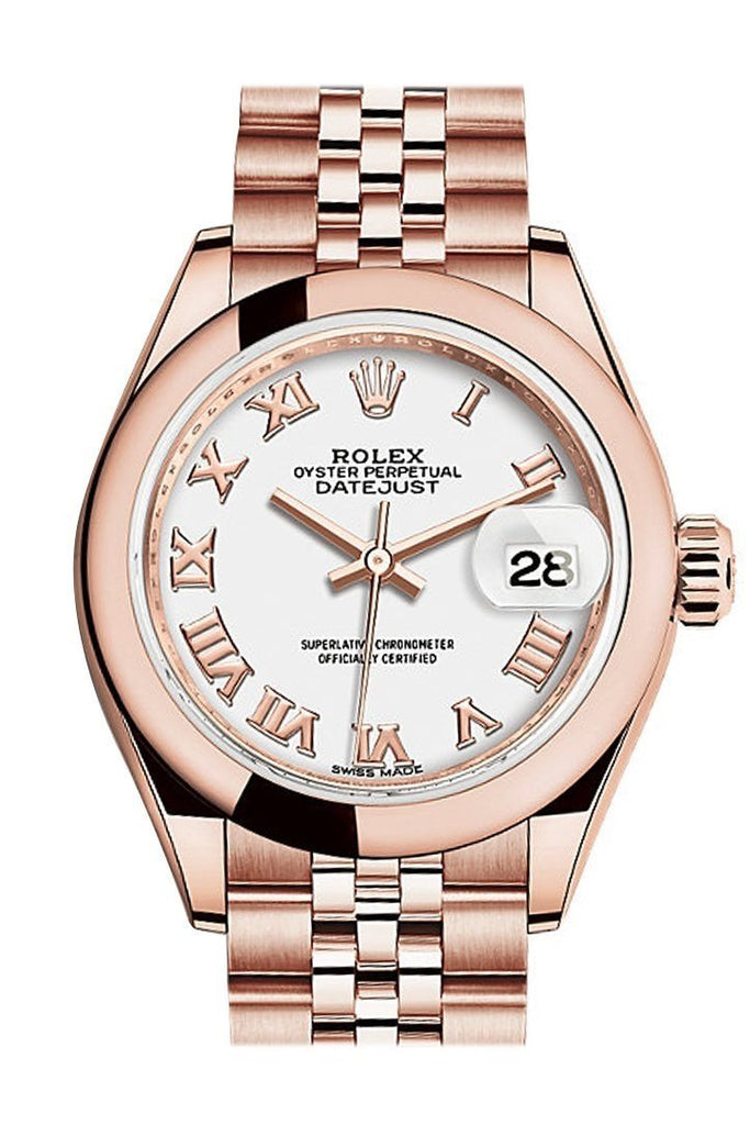 Rolex Datejust 28 White Roman Dial Rose Gold Jubilee Ladies Watch 279165 NP