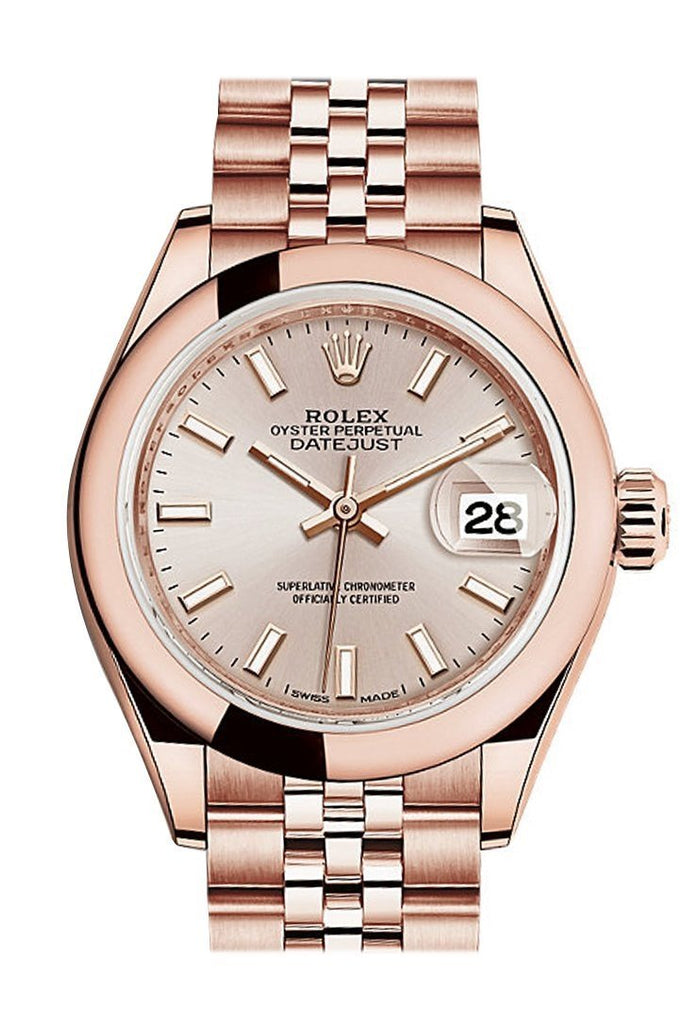 Rolex Datejust 28 Sundust Dial Rose Gold Jubilee Ladies Watch 279165 NP
