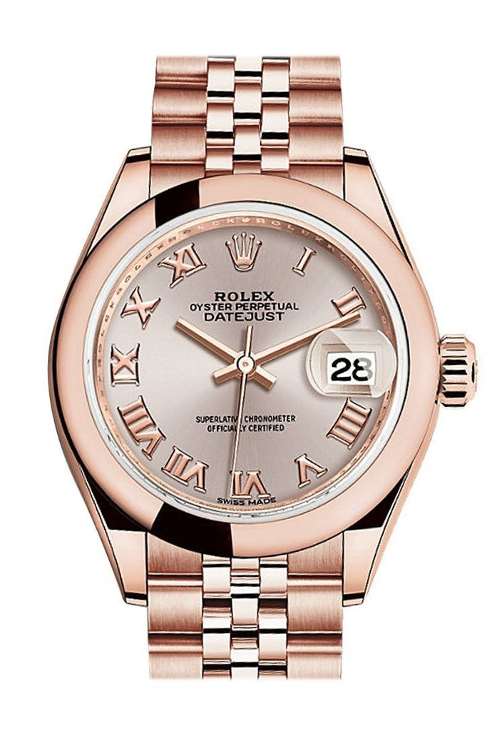 Rolex Datejust 28 Sundust Roman Dial Rose Gold Jubilee Ladies Watch 279165 NP