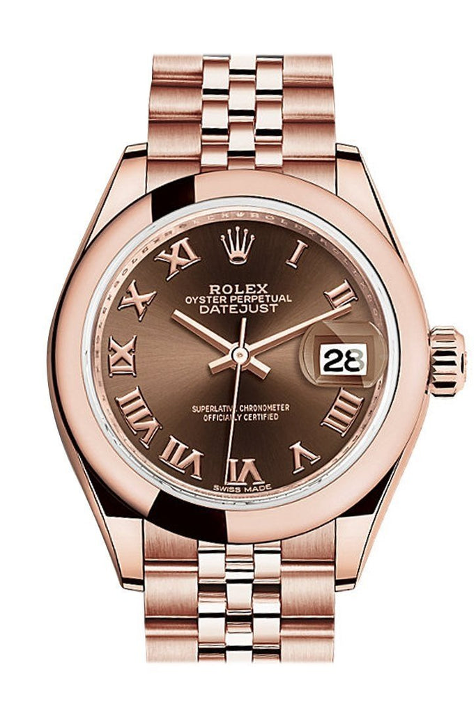 Rolex Datejust 28 Chocolate Roman Dial Rose Gold Jubilee Ladies Watch 279165 NP