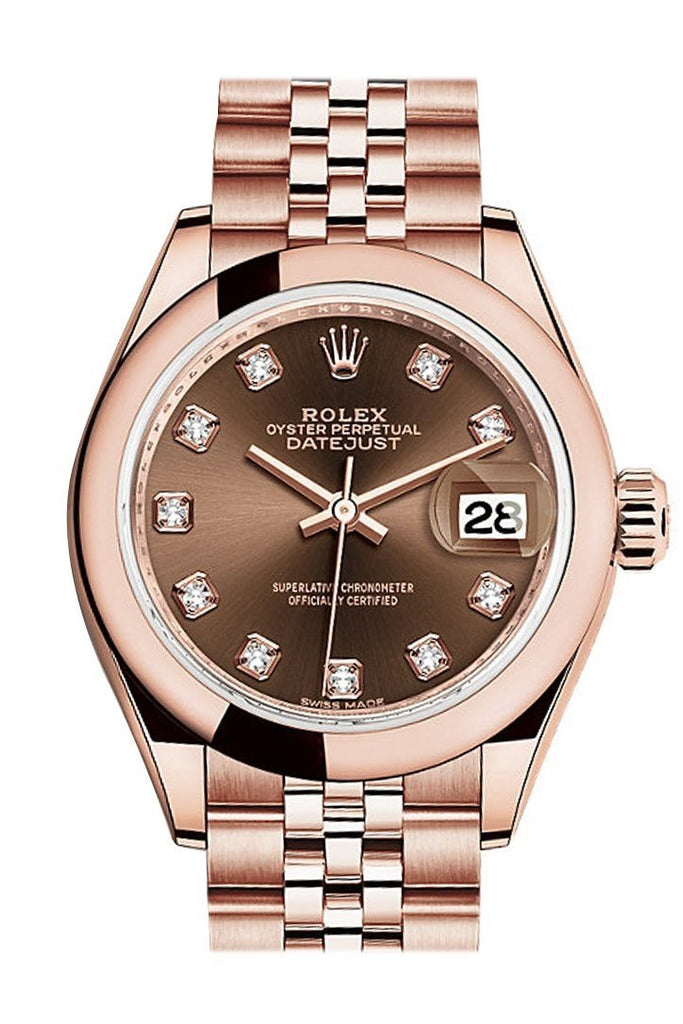 Rolex Datejust 28 Chocolate Diamond Dial Rose Gold Jubilee Ladies Watch 279165 NP