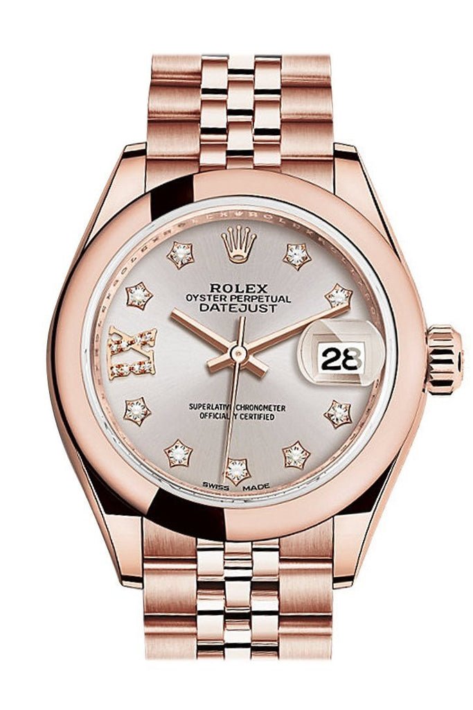 Rolex Datejust 28 Sundust 9 diamonds set in star Dial Rose Gold Jubilee Ladies Watch 279165 NP