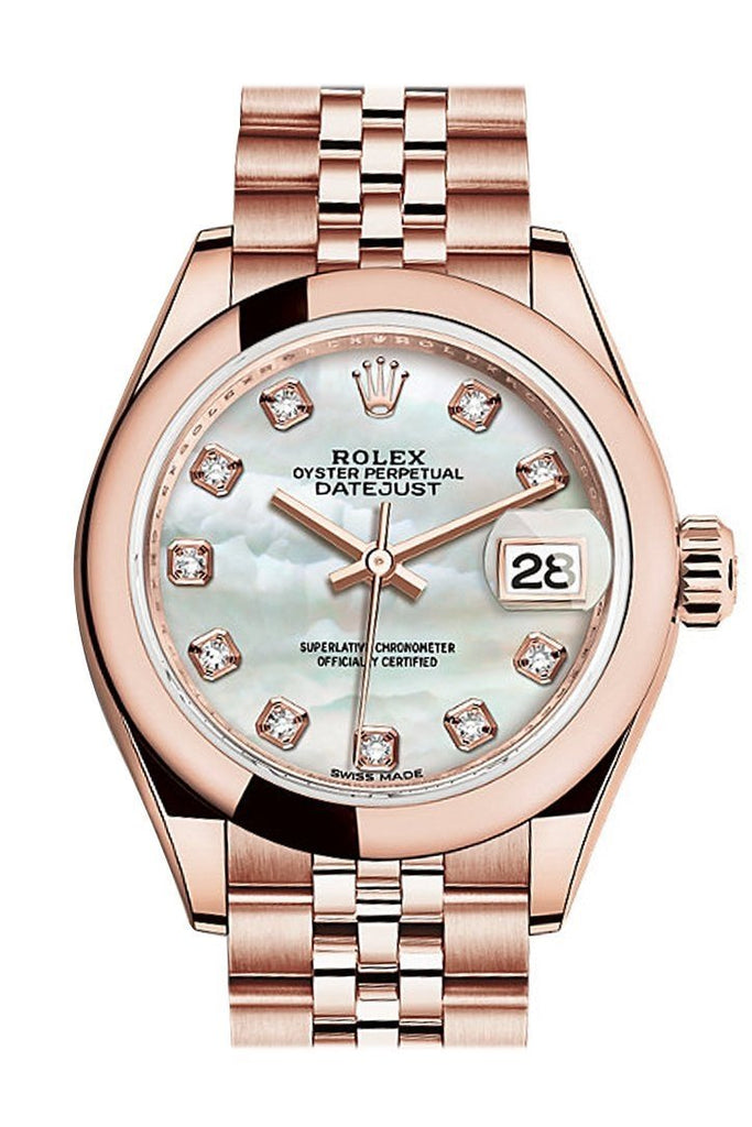 Rolex Datejust 28 Mother of Pearl Diamond Dial Rose Gold Jubilee Ladies Watch 279165 NP