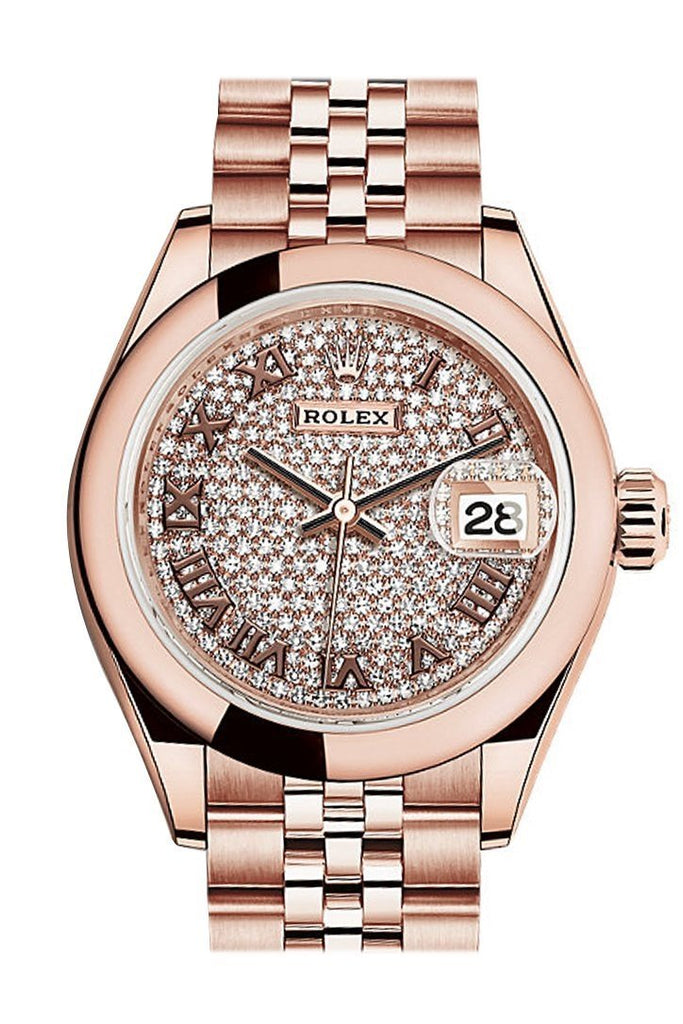 Rolex Datejust 28 Pave Diamond Dial Rose Gold Jubilee Ladies Watch 279165 NP