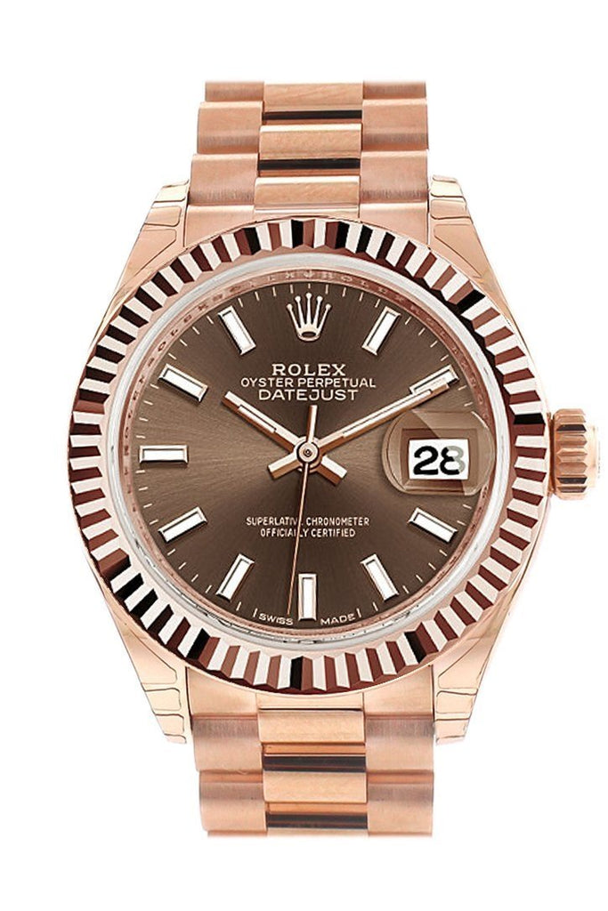 Rolex Datejust 28 Chocolate Dial Fluted Bezel Rose Gold President Ladies Watch 279175 NP