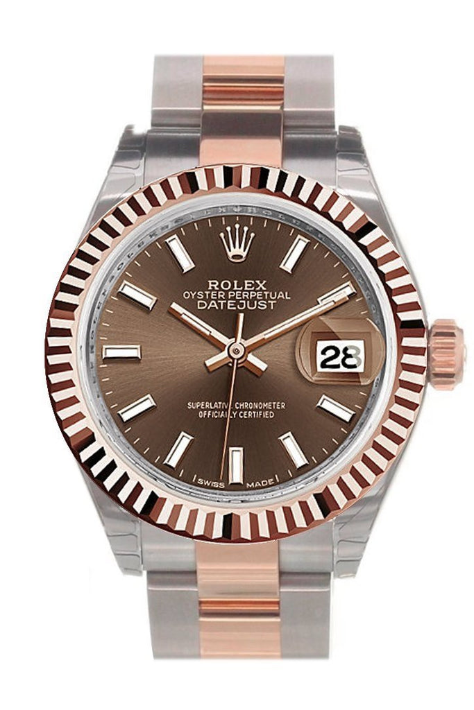 Rolex Datejust 28 Chocolate Dial Fluted Bezel Oyster Ladies Watch 279171 NP