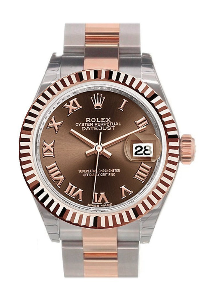 Rolex Datejust 28 Chocolate Roman Dial Fluted Bezel Oyster Ladies Watch 279171 NP