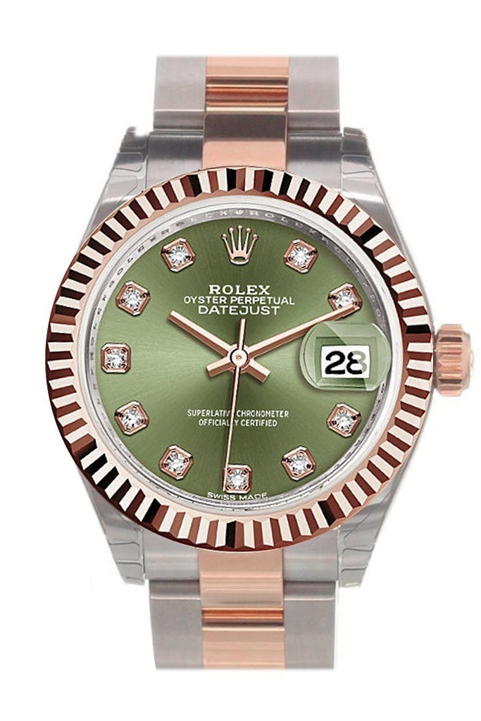 Rolex Datejust 28 Olive Green Diamond Fluted Bezel Dial Oyster Ladies Watch 279171 NP