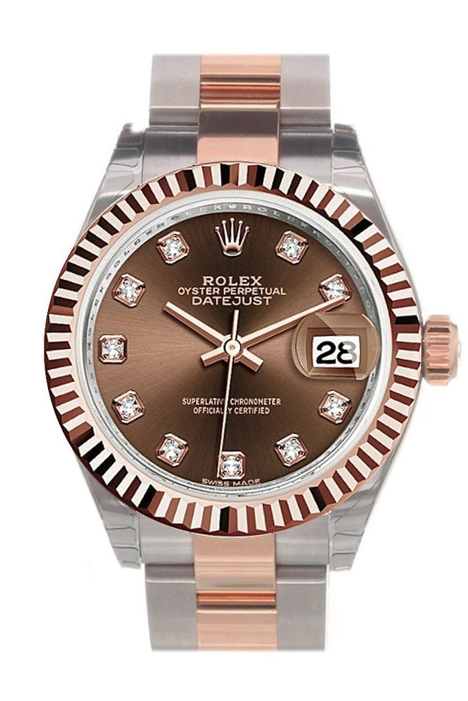 Rolex Datejust 28 Chocolate Diamond Dial Fluted Bezel Oyster Ladies Watch 279171 NP