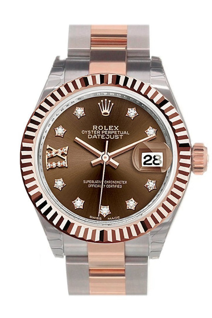 Rolex Datejust 28 Chocolate 9 diamonds set in star Dial Fluted Bezel Oyster Ladies Watch 279171 NP