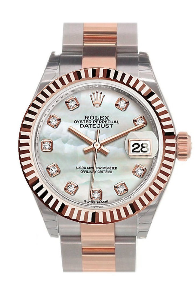 Rolex Datejust 28 Mother of Pearl Diamond Dial Fluted Bezel Oyster Ladies Watch 279171 NP