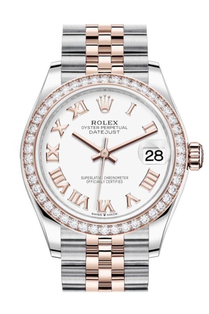 Rolex Datejust 31 White Dial Diamond Bezel Rose Gold Two Tone Jubilee Watch 278381RBR 278381