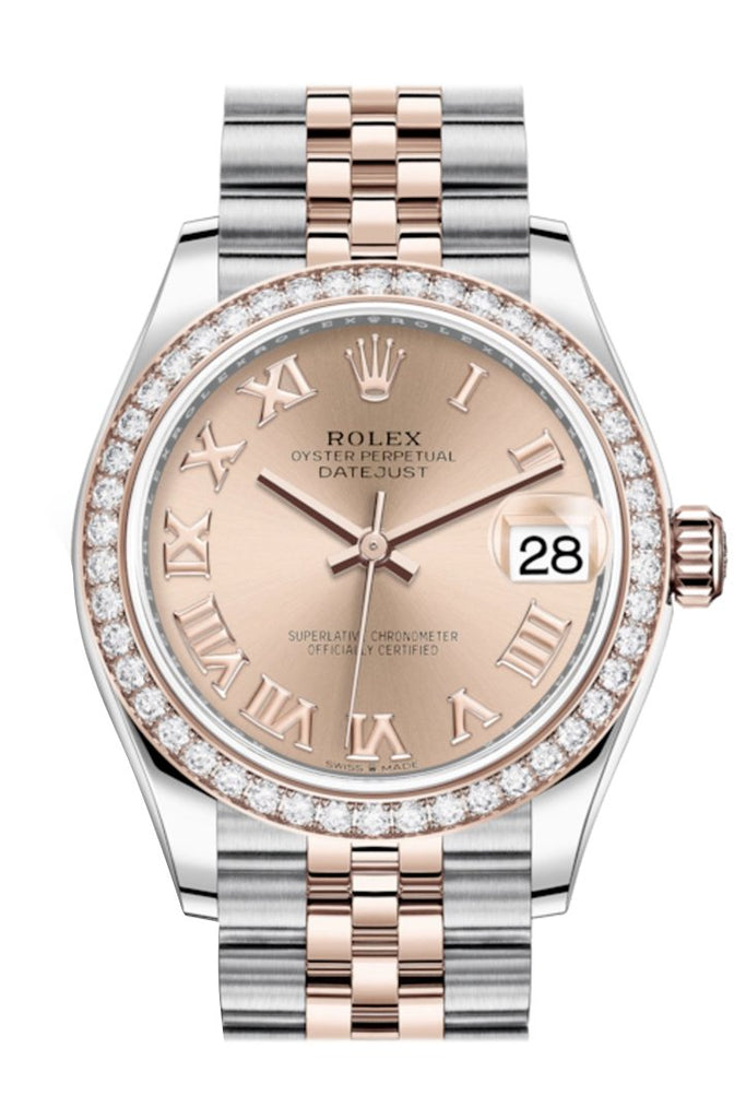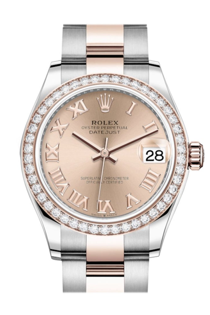 Rolex Datejust 31 RosŽ Roman Dial Diamond Bezel Rose Gold Two Tone Watch 278381RBR 278381