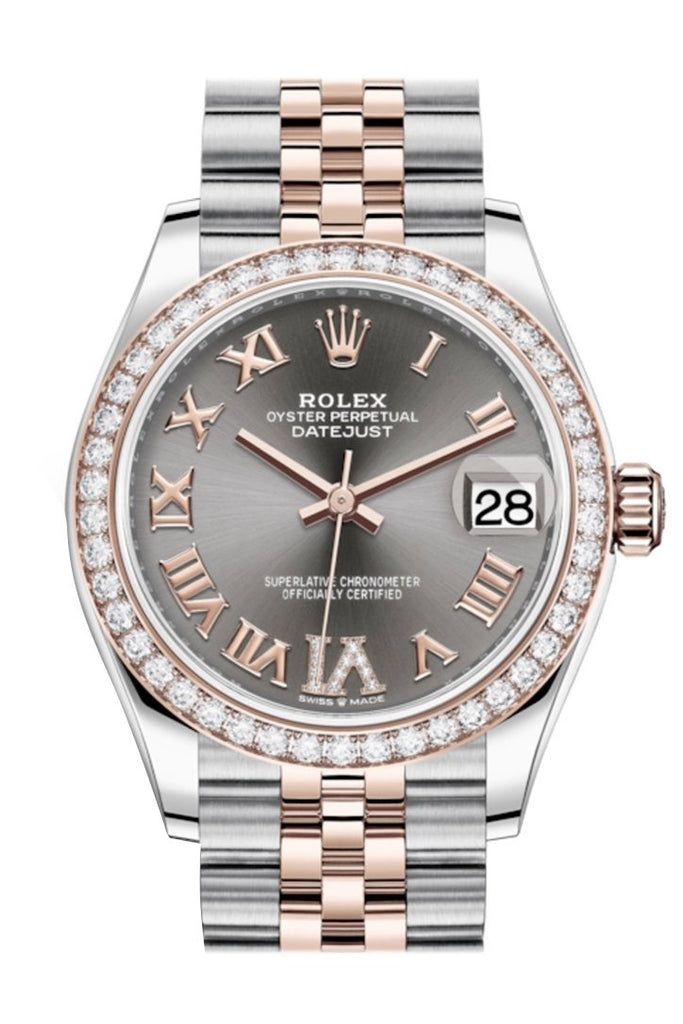 Rolex Datejust 31 Dark Rhodium Dial Diamond Bezel Rose Gold Two Tone Jubilee Watch 278381RBR 278381