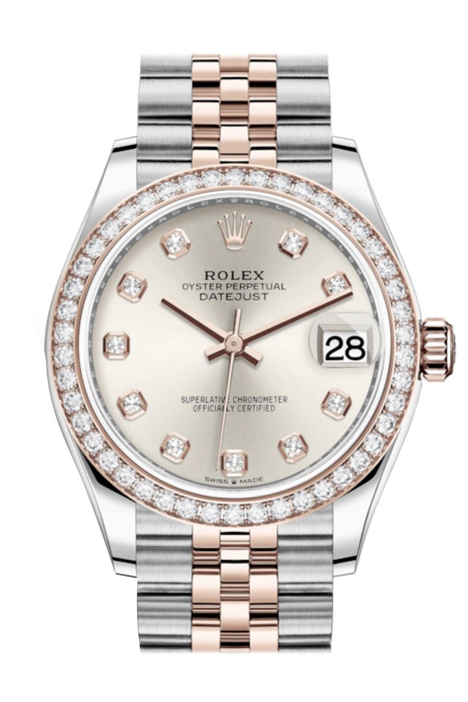 Rolex Datejust 31 Silver Diamonds Dial Diamond Bezel Rose Gold Two Tone Jubilee Watch 278381RBR 278381