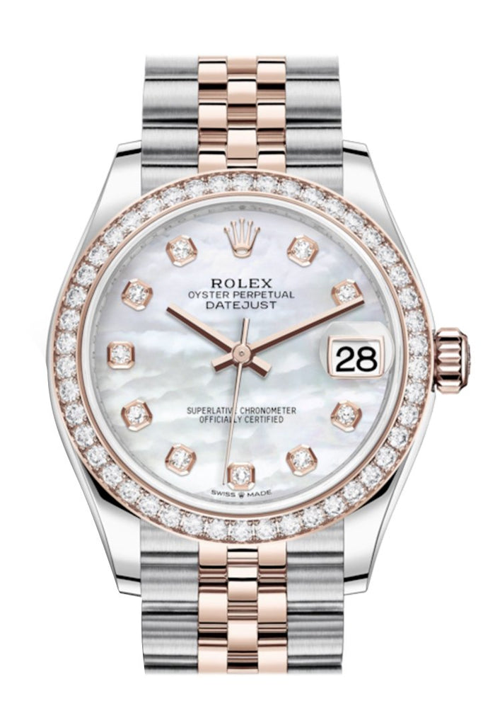 Rolex Datejust 31 White mother-of-pearl Diamonds Dial Diamond Bezel Rose Gold Two Tone Jubilee Watch 278381RBR 278381
