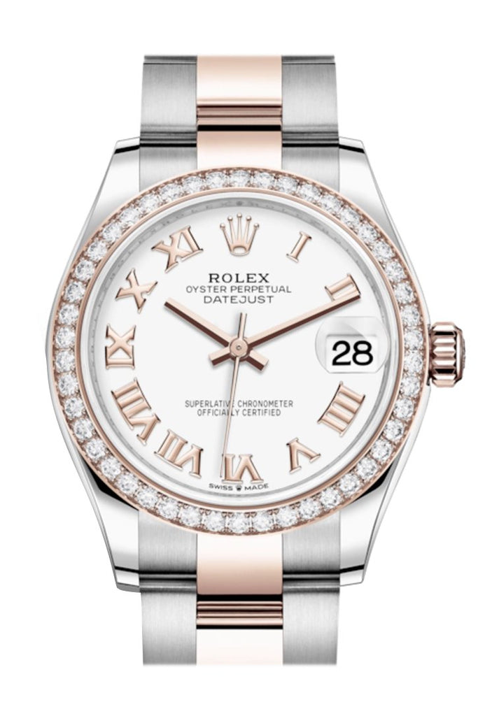 Rolex Datejust 31 White Dial Diamond Bezel Rose Gold Two Tone Watch 278381RBR 278381