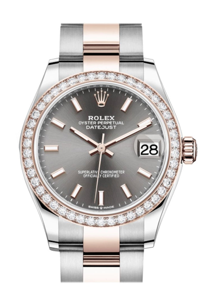 Rolex Datejust 31 Dark Rhodium Dial Diamond Bezel Rose Gold Two Tone Watch 278381RBR 278381