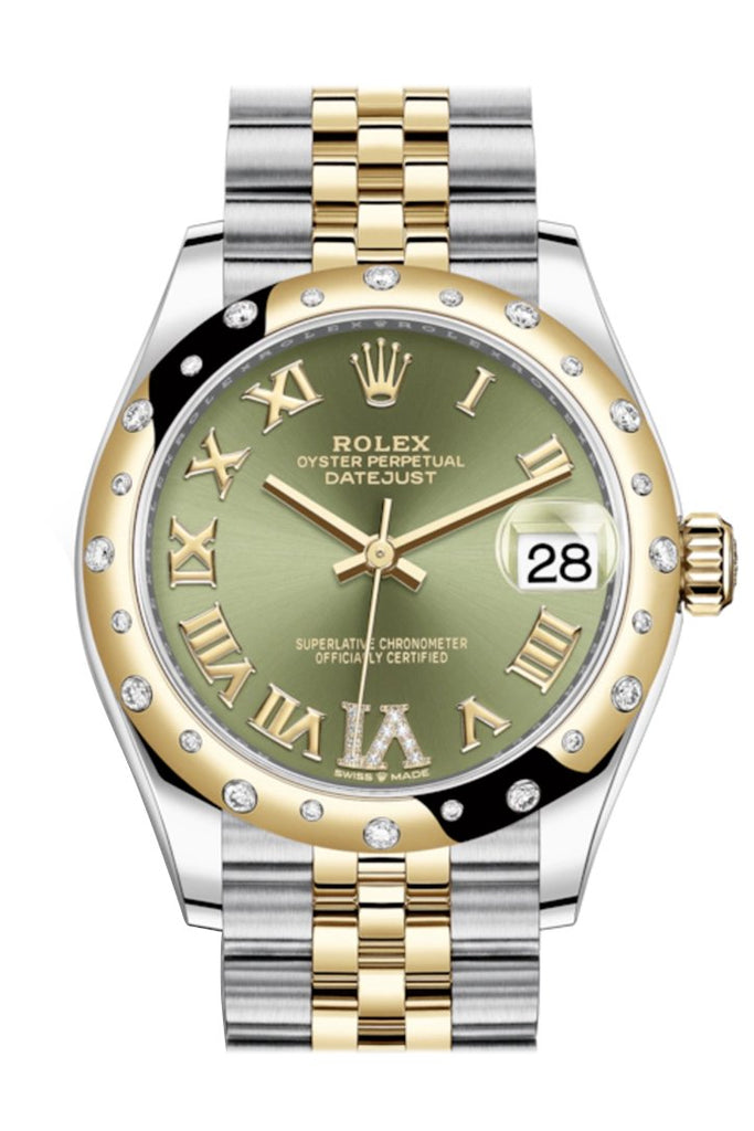 Rolex Datejust 31 Olive green Large VI diamonds Dial Diamond Bezel Yellow Gold Two Tone Watch 278343RBR 278343