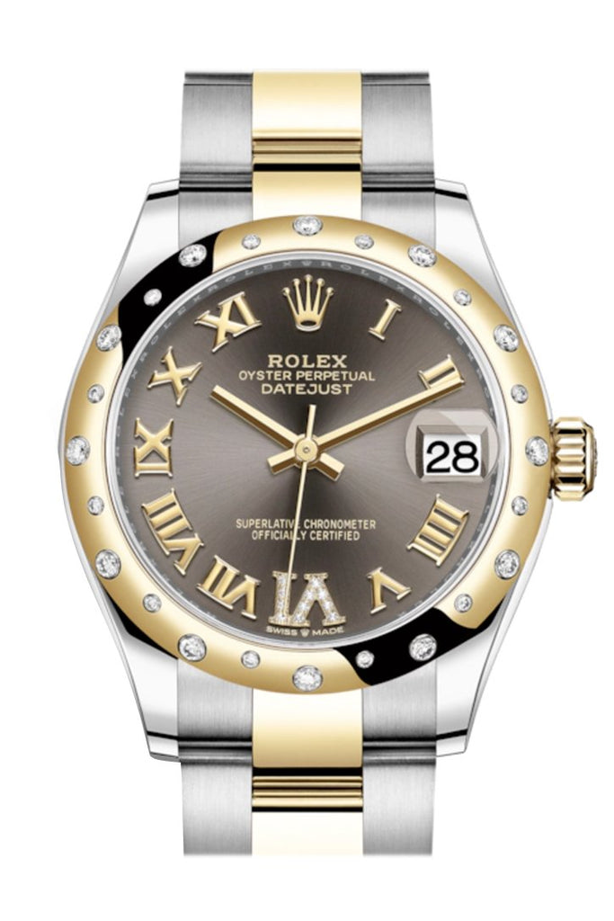 Rolex Datejust 31 Dark Grey Large VI diamonds Dial Diamond Bezel Jubilee Yellow Gold Two Tone Watch 278343RBR 278343 NP
