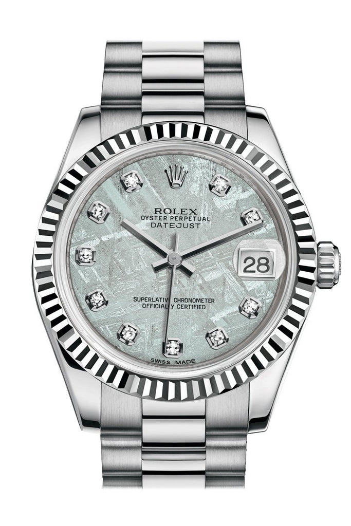 Rolex Datejust 31 MeteoriteÊDiamond Dial Fluted Bezel 18K White Gold President Ladies Watch 178279