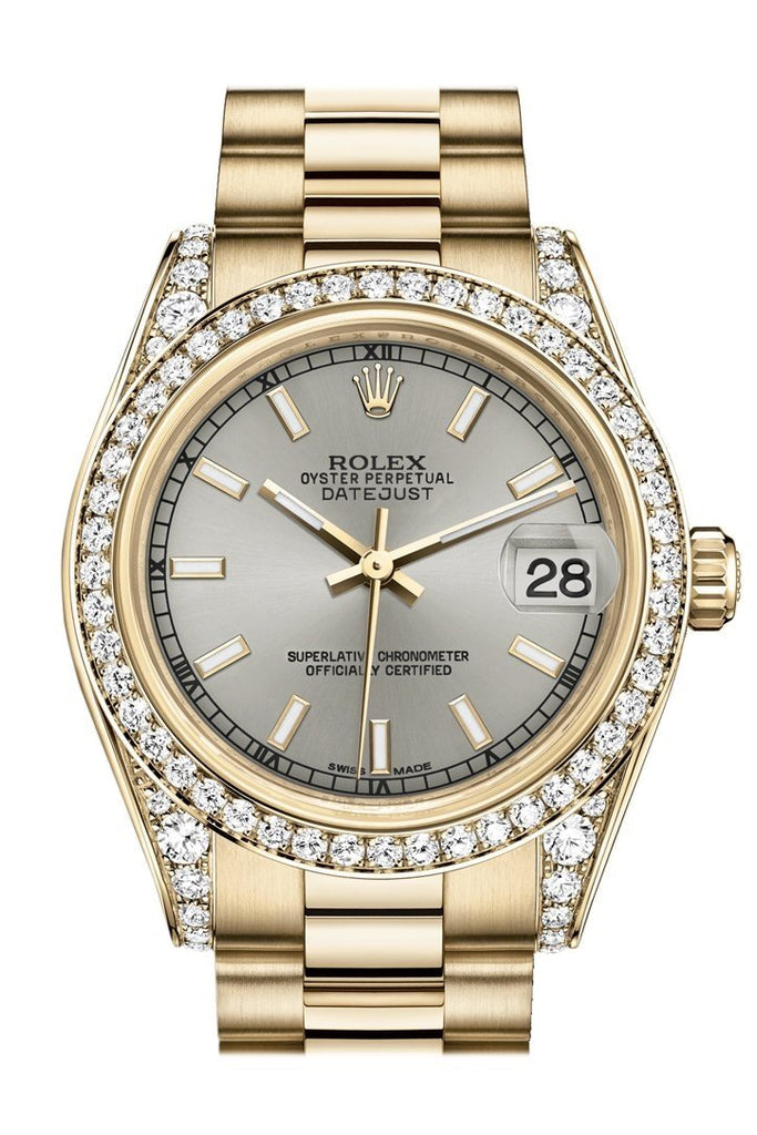 Rolex Datejust 31 Silver Dial Diamond Bezel Lug 18K Yellow Gold President Ladies Watch 178158